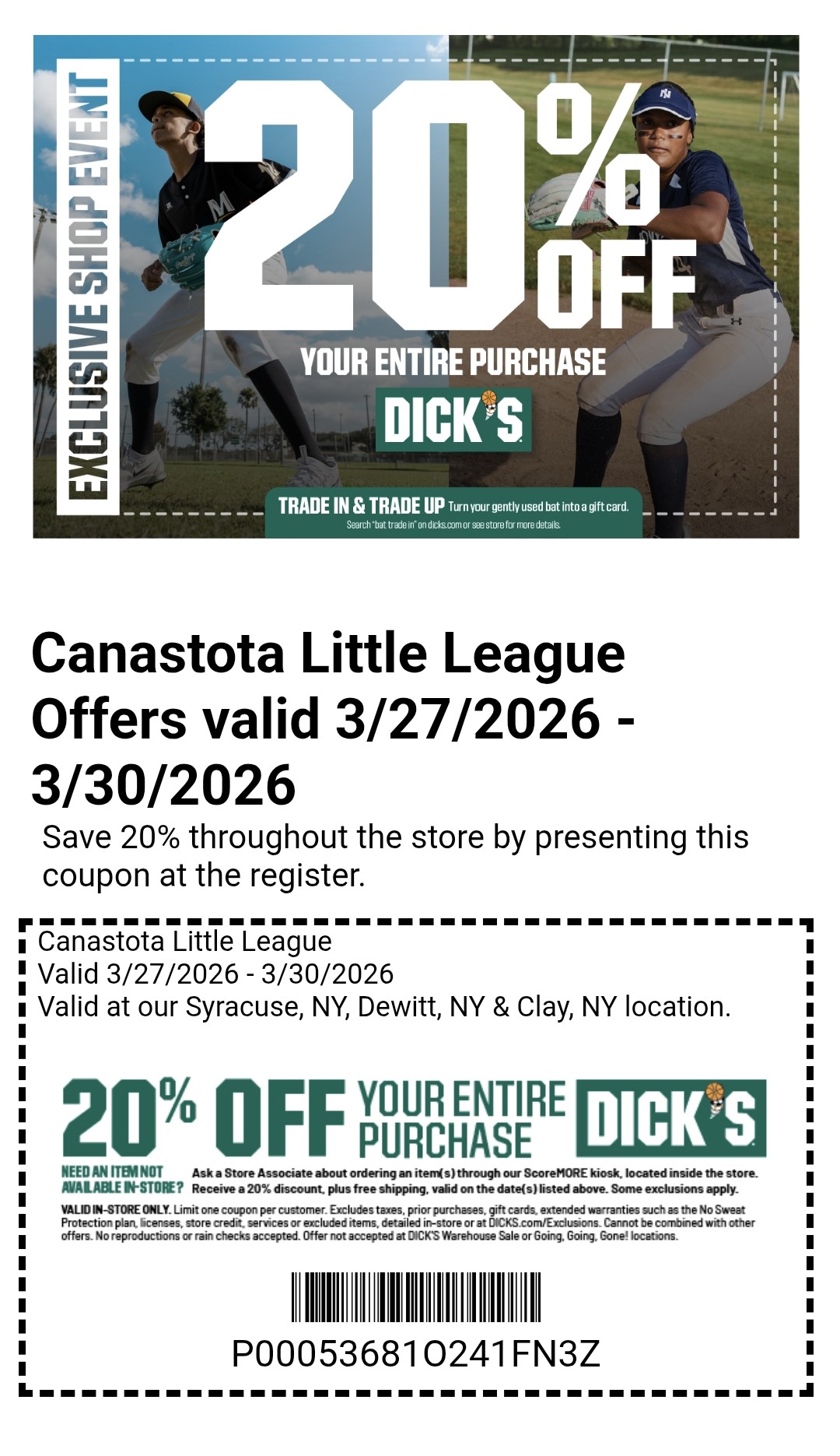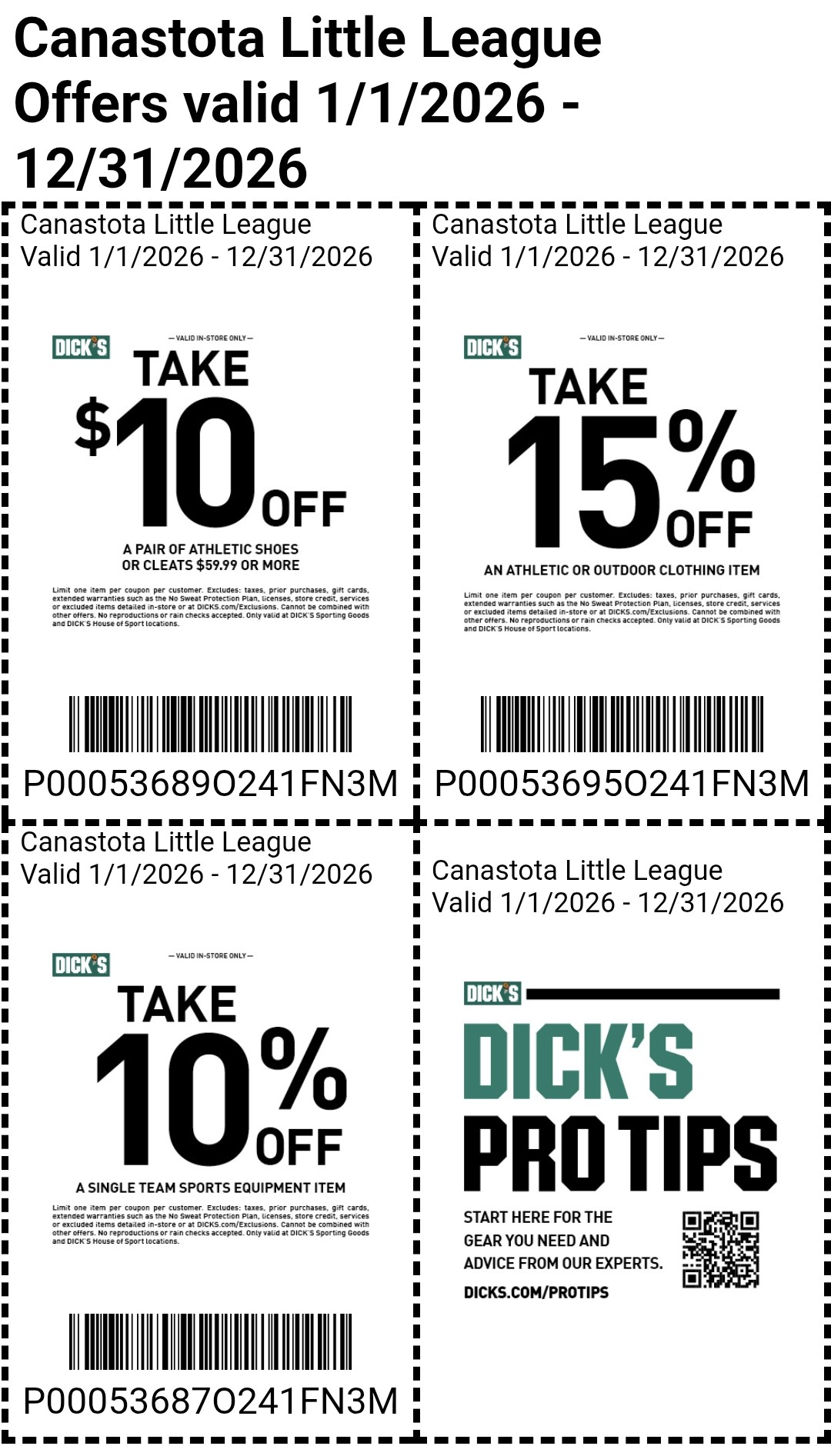 Dick's Sporting Good purchase coupon - valid 1/1/26 - 12/31/26https://cmm.dickssportinggoods.com/crmcdn/getoffer.aspx?offer_entity_code=O241FN3M&token=Fot7N4li5TQG1HT1rxIijeji-3StBYd3Nf-uvbG7kuS19n2oOpn7HQCGB5k-8qX4ob7tZI10cy8x2jyH2i1x0Q2THANK YOU DICK'S SPORTING GOODS, INC.!